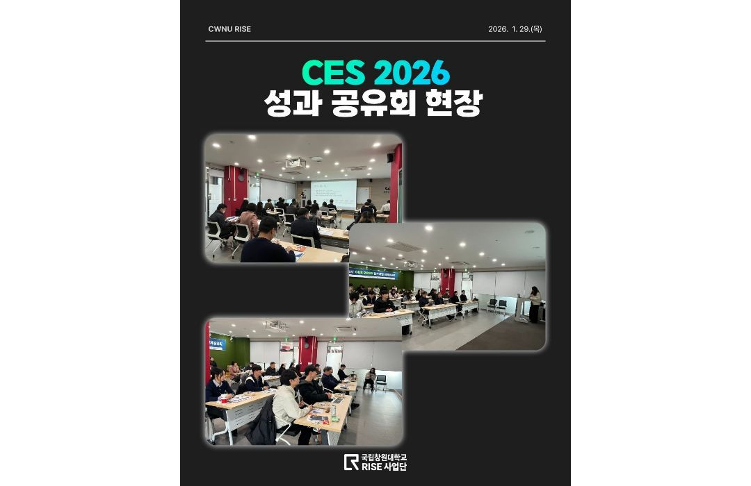 1월 29일(목)에 CES 2026 성과공유회에 국립창원대학교 RISE사업단이 참여하여 진행되었습니다✨